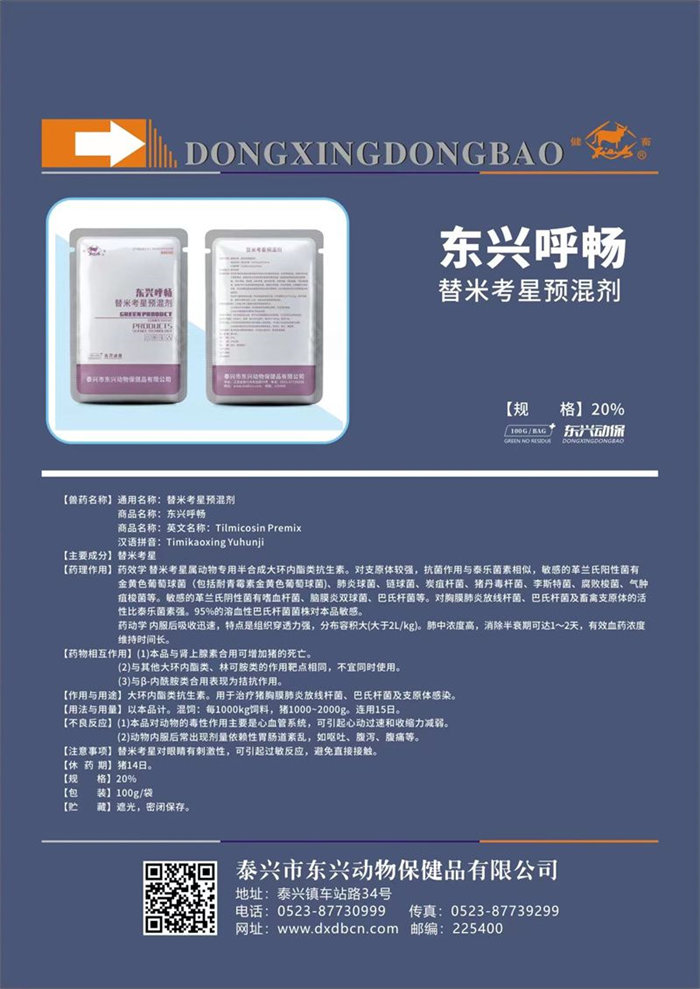 | 產(chǎn)品類別 | 豬藥產(chǎn)品 > 東興呼暢 替米考星預(yù)混劑 |
